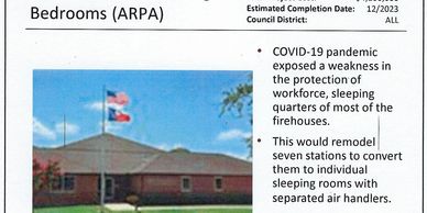 In preparation for discussions in July 2021 about allocating ARPA funds, Deborah asked GFD what steps could be taken to better protect Garland firefighters in future pandemics. GFD responded that providing individual bedrooms with separate air-handling (rather than having up to 6 firefighters share dorm-style rooms) could potentially reduce disease spread. Deborah asked for funding to add those features not only to the new-build fire stations, but to renovate all the other remaining stations as well. Her recommendation was approved by Council.